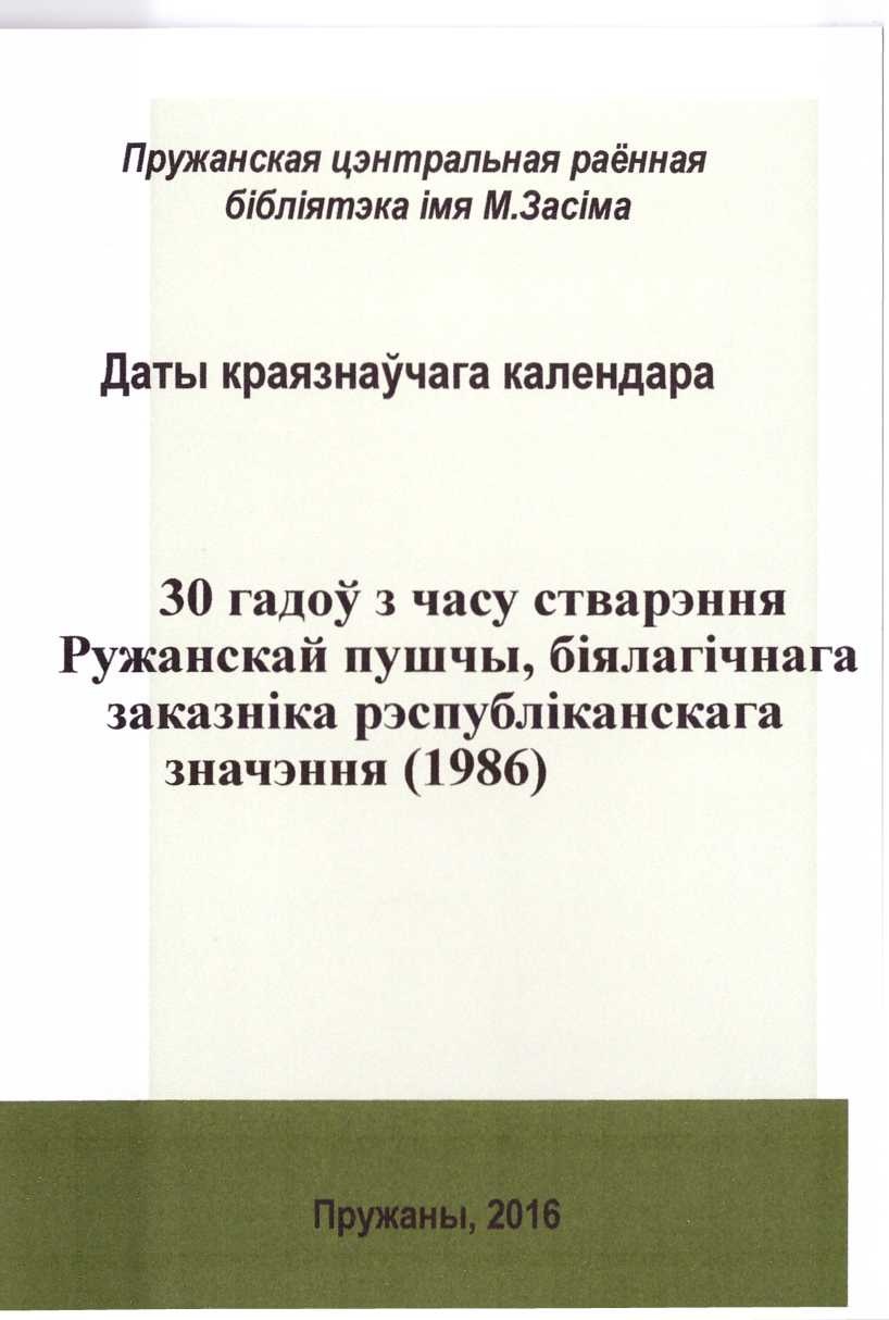 Краязнаўчы паказальнік “30 гадоў з часу стварэння Ружанскай пушчы, біялагічнага заказніка рэспубліканскага